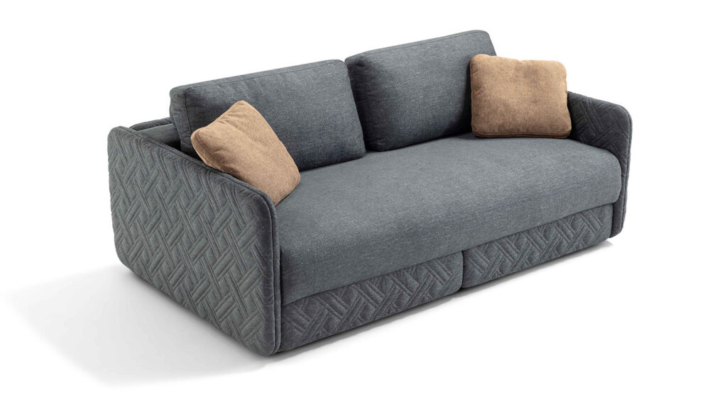 Lia King Size Sofa bed, Leather Arms, Bouclage Grey Fabric.