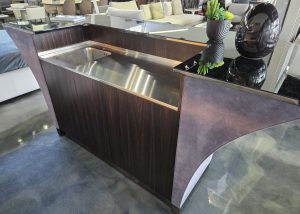 Grandelon Bar, Nabuck Leather, Mirrored top. Reg. Price $26.000 Now 50% off Sale Price $13.000.00