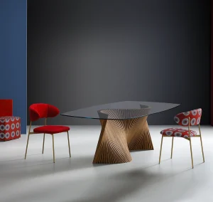 Natisa Dining Table 95″ x 48″ Clear Glass Top, Wenge Wooden Base Reg. Price $7.995.00 Sale Price $5.495.00